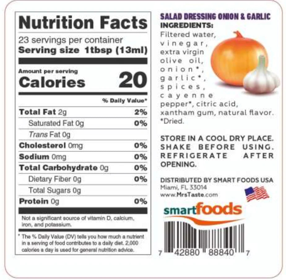 Elevate Your Meals with Our Onion Garlic Dressing—Flavorful, Sugar-Free, Sodium-Free, Gluten-Free, and Dairy-Free!